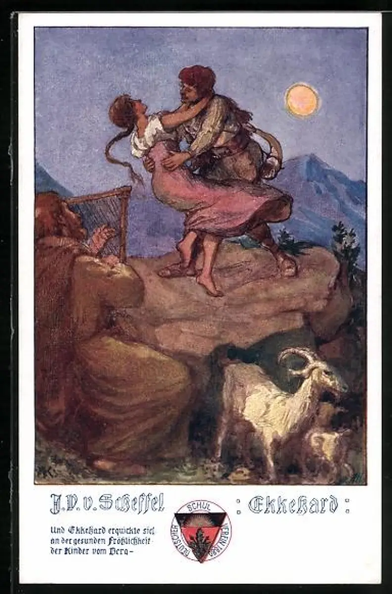 AK Deutscher Schulverein Nr. 494: Paar tanzt auf einem Felsen