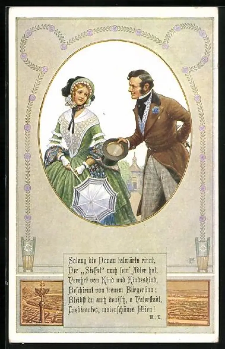AK Deutscher Schulverein Nr. 529: galanter Herr macht einer Dame den Hof