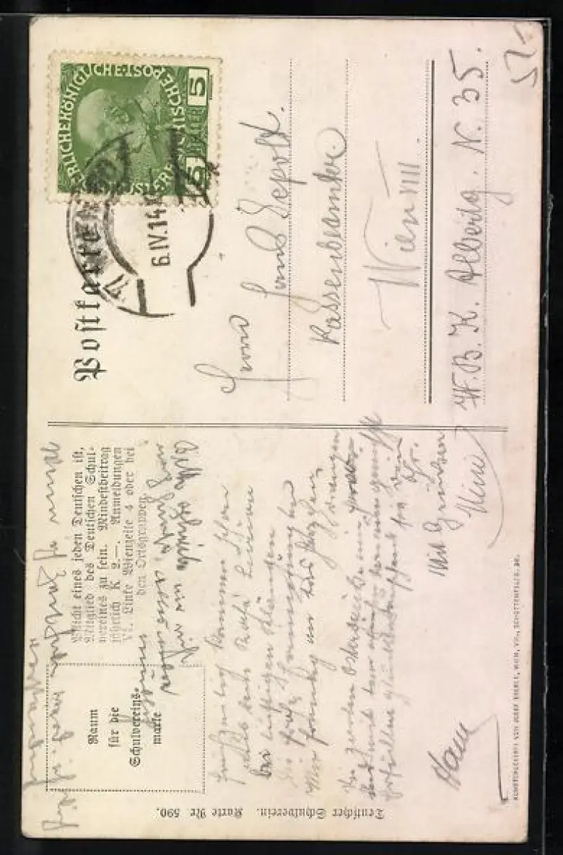 gelaufen 1914, Eckknick unten re., guter Zustand