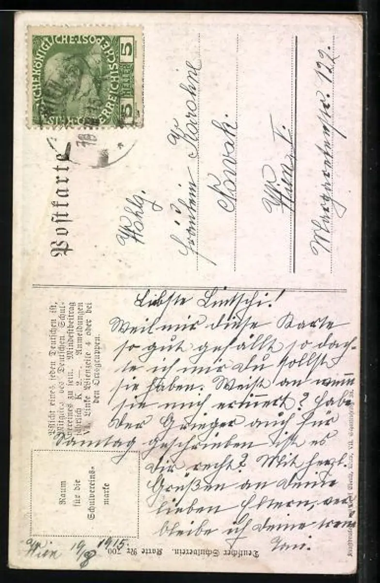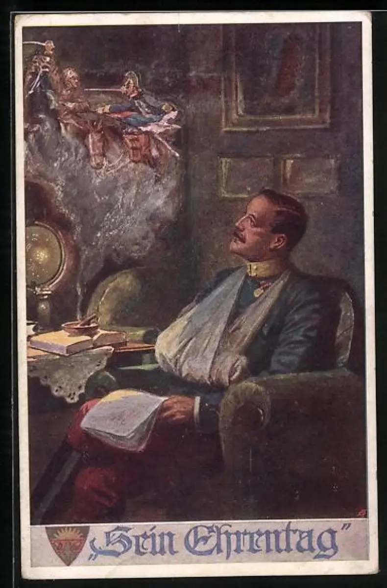 AK Deutscher Schulverein Nr. 700: Sein Ehrentag, Verletzter österreichischer Soldat im Sessel