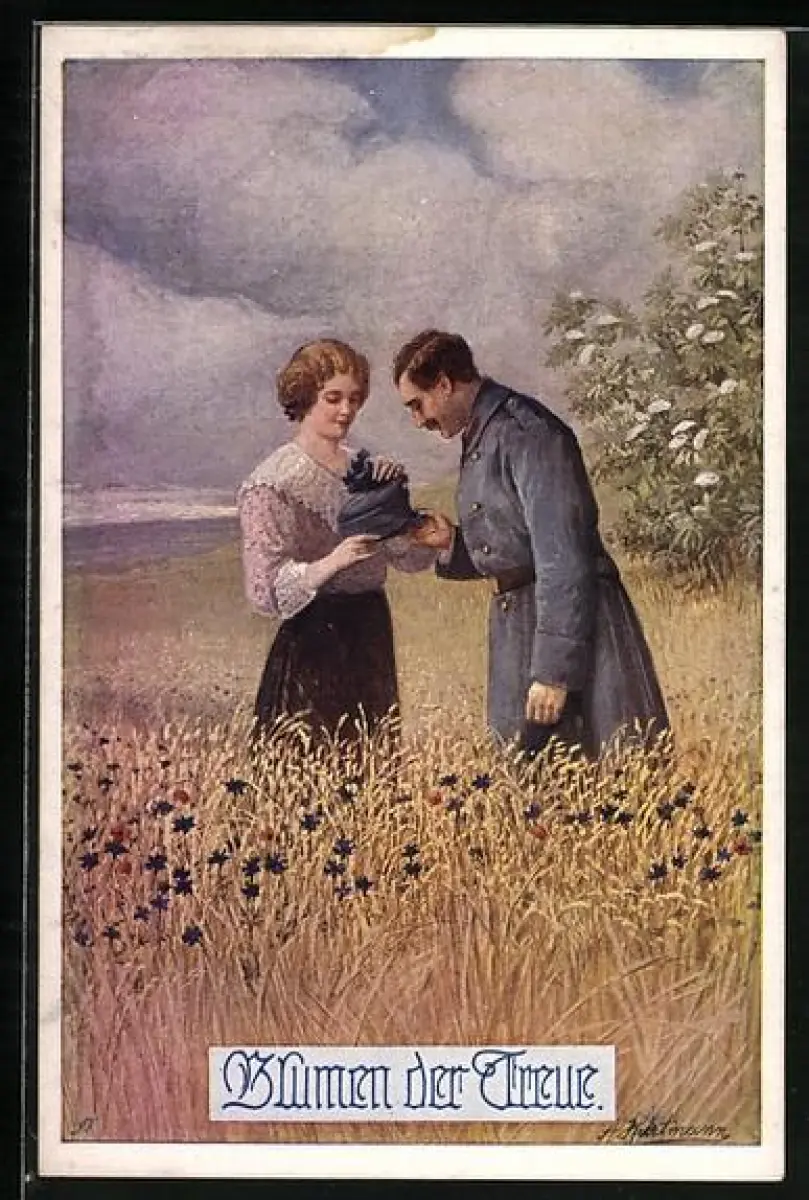 AK Deutscher Schulverein Nr. 733: Blumen der Treue, Soldat mit Frau
