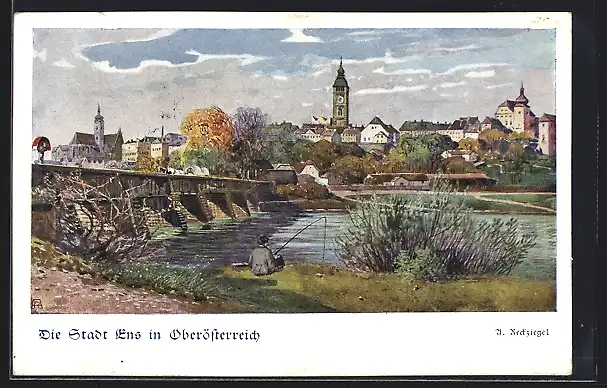 AK Deutscher Schulverein Nr. 816: Enns, Gesamtansicht mit Kirche