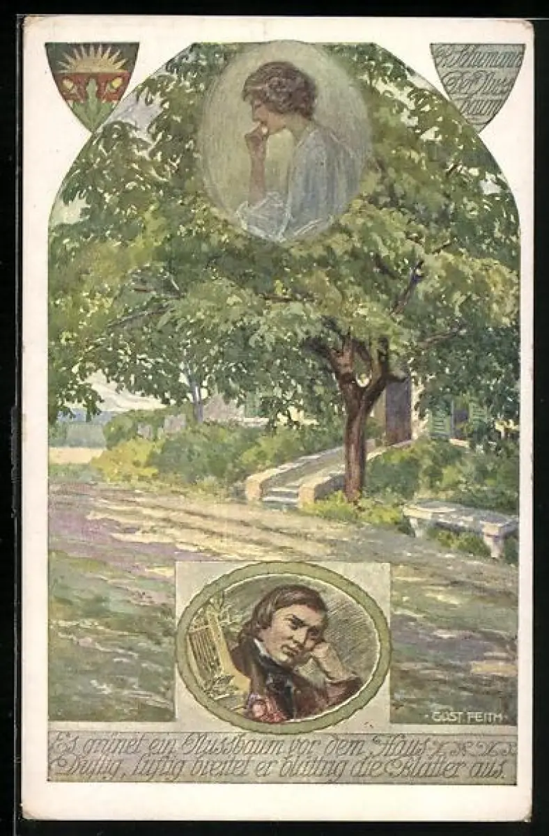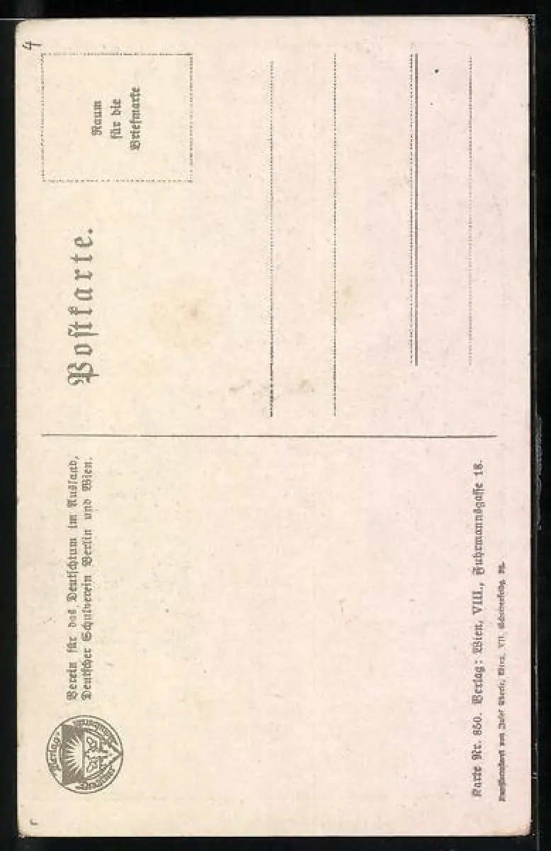 AK Deutscher Schulverein Nr. 850: Es grünet ein Nussbaum vor dem Haus, Dame in weiss denkt nach