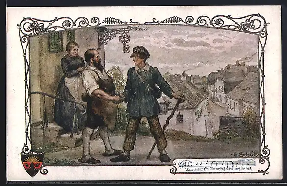 AK Deutscher Schulverein Nr. 902: Sohn mit den Eltern, Herr Vater, Frau Mutter, dass Gott euch behüt`, Lied mit Noten