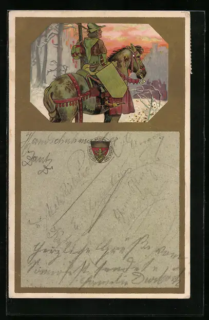AK Deutscher Schulverein Nr.: Ritter zu Pferd in der Abenddämmerung