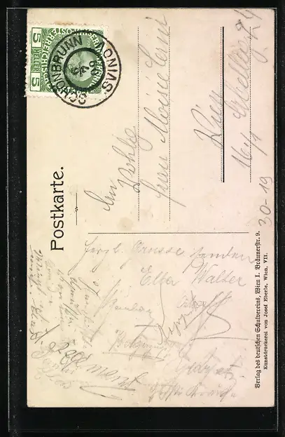 gelaufen 1909, Eckknick li. unten, Verleimung gelöst li. oben, guter Zustand