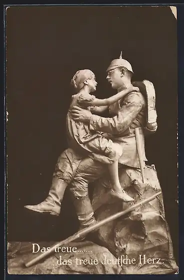 AK Deutscher Soldat in Uniform mit seiner Tochter, Das Treue... sas Treue deutsche Herz