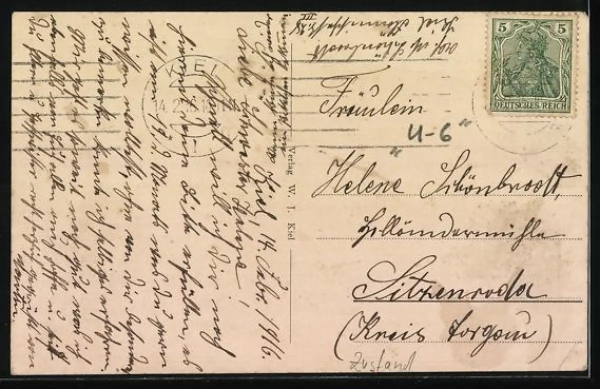 alte Ansichtskarte, gelaufen, Eckknick links oben, guter Zustand