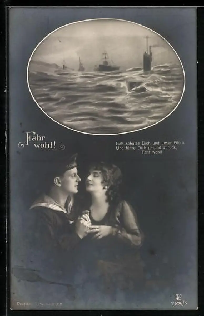 AK Deutsches U-Boot bei Überwasserfahrt, Matrose mit seiner Liebsten im Arm