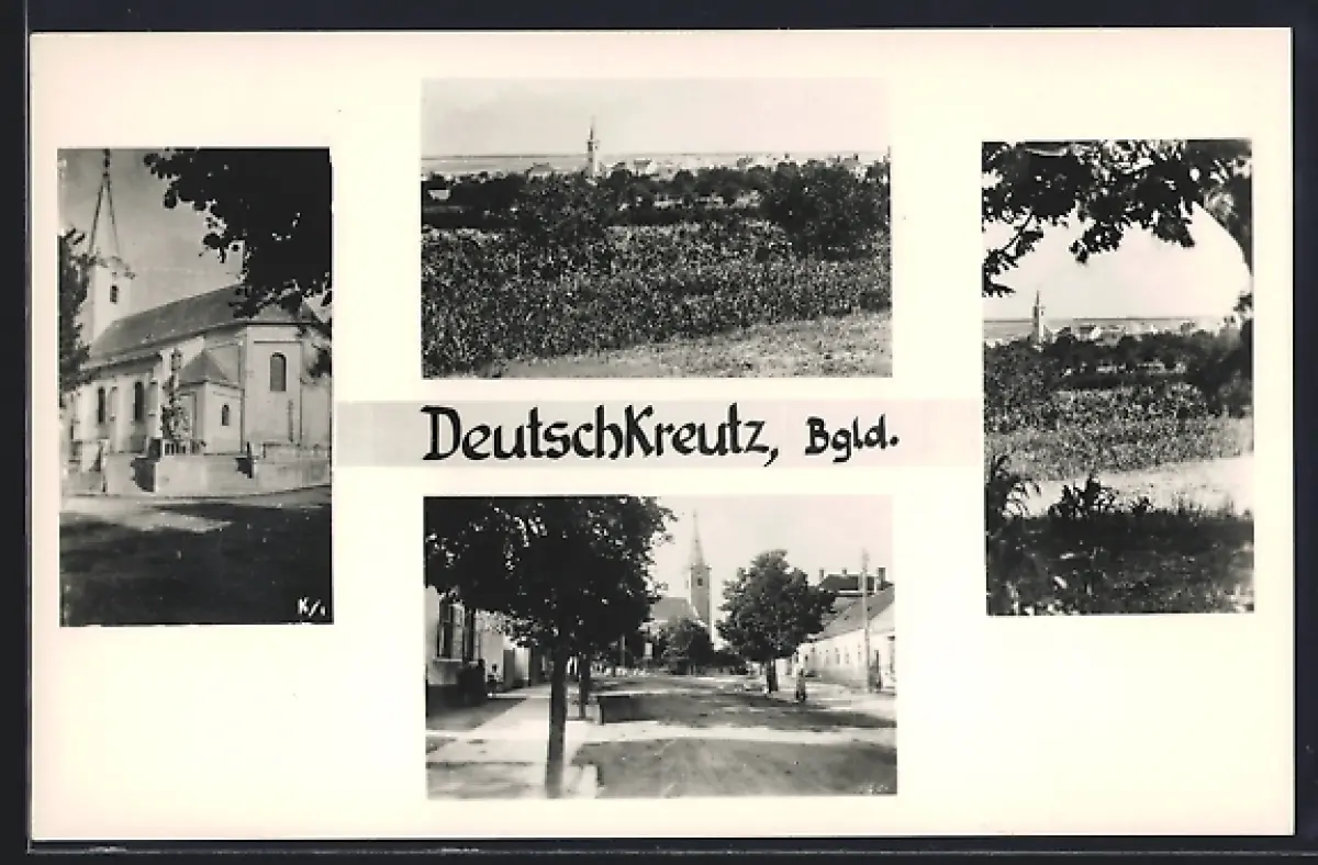 AK Deutschkreutz /Bgld., Kirche, Strassenpartie, Ortspartie