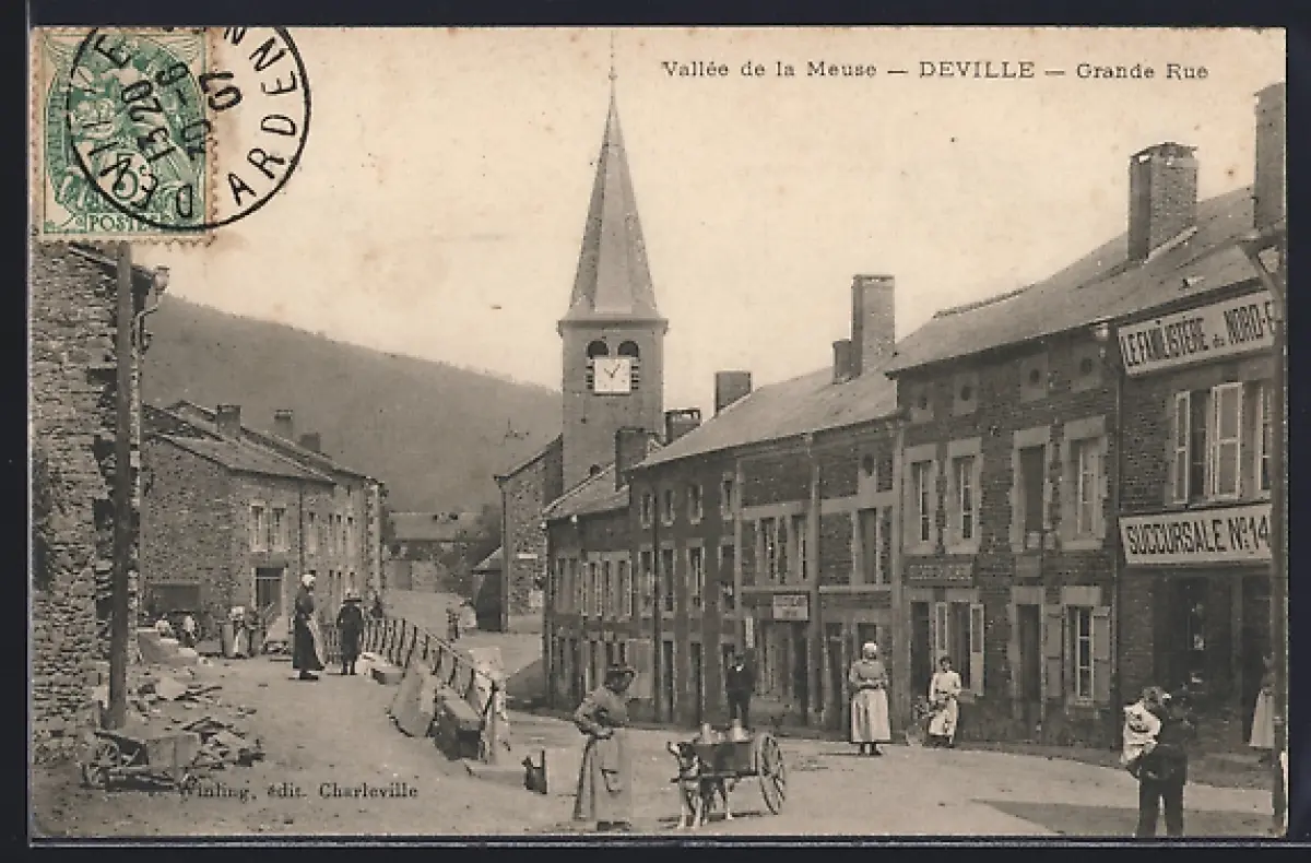 AK Deville /Vallée de la Meuse, Grande Rue avec église et passants