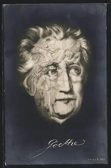 AK Dichter J. W. v. Goethe, Gesicht geformt aus Figuren seiner Geschichten