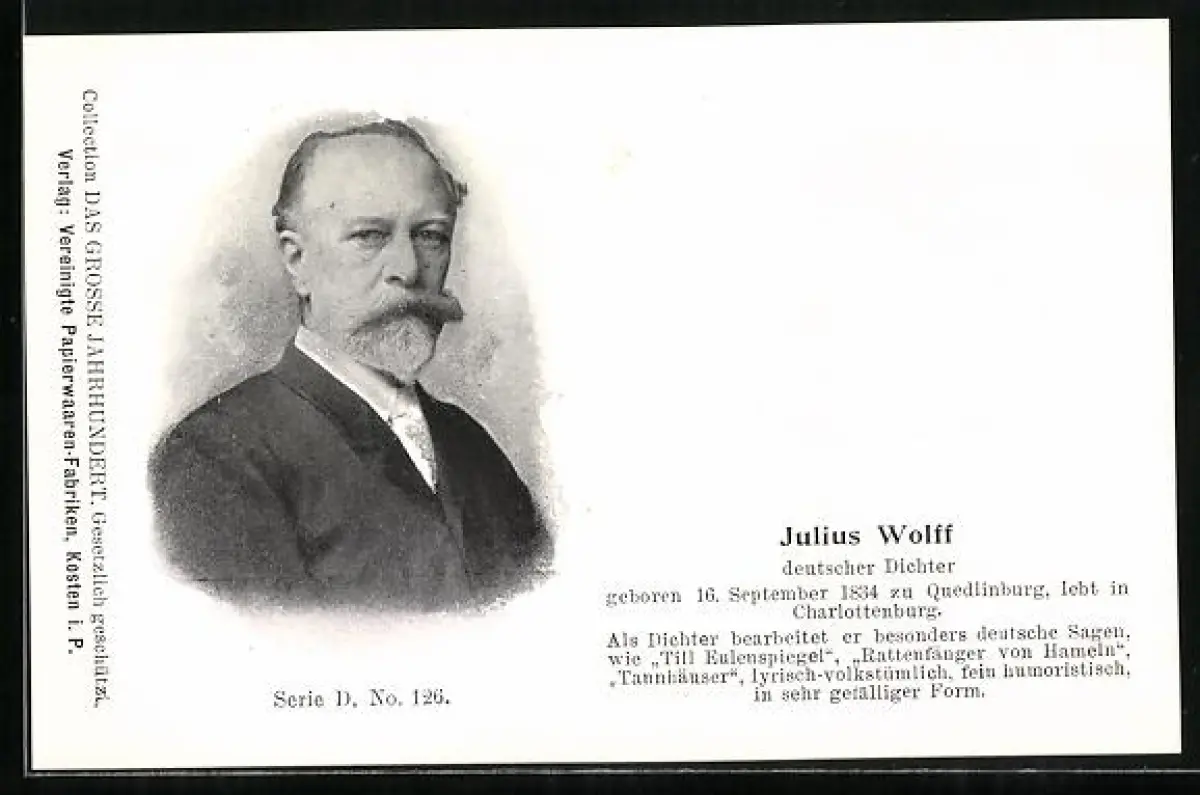 AK Dichter Julius Wolff, Portrait, geb. 16.09.1834, Vers
