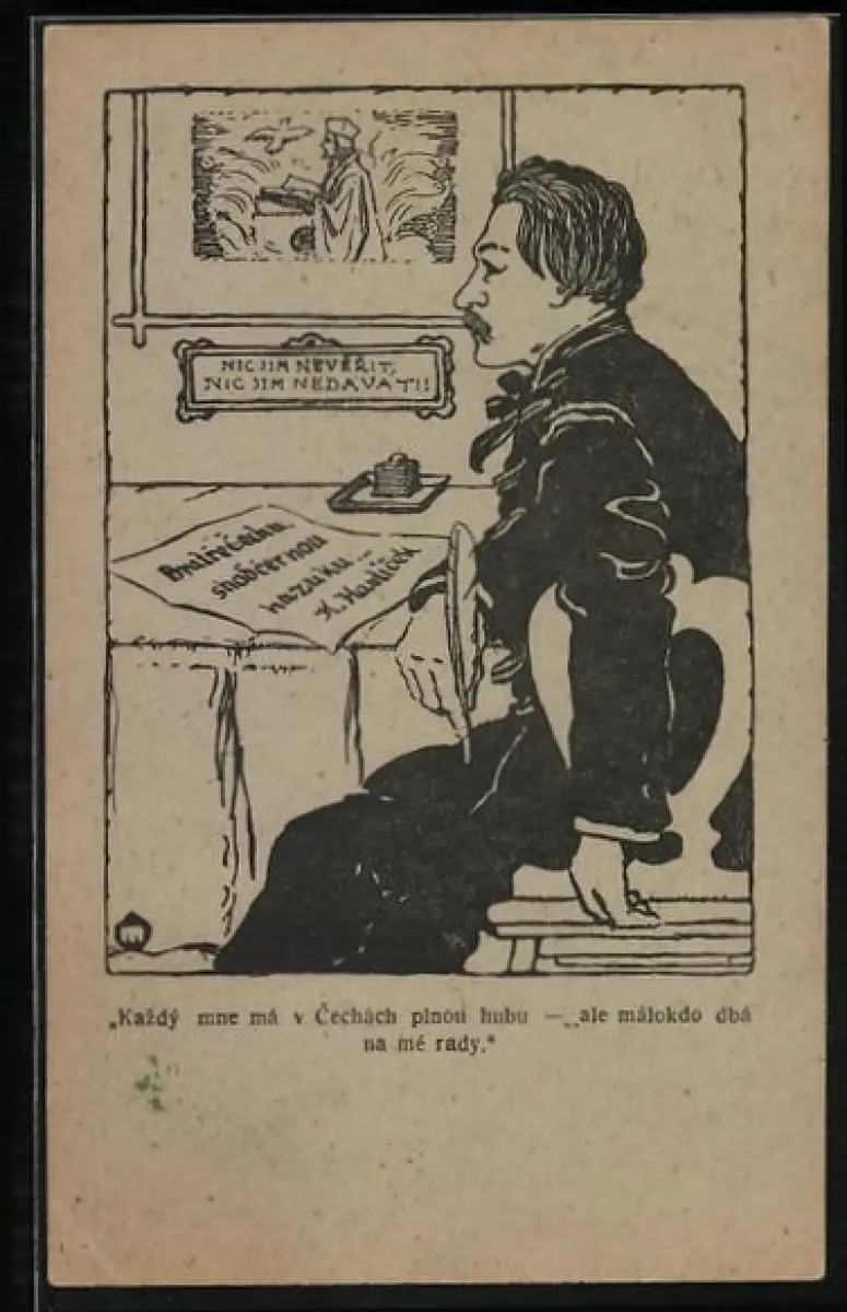 AK Dichter K. Haulicek sitzt nachdenklich am Schreibtisch