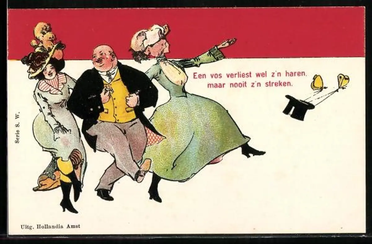 AK Dicker Mann tanzt mit zwei Frauen, Erotik