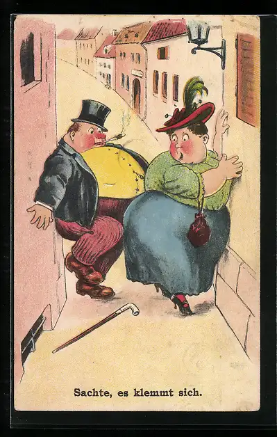 AK Dicker Mann und übergewichtige Frau stecken fest