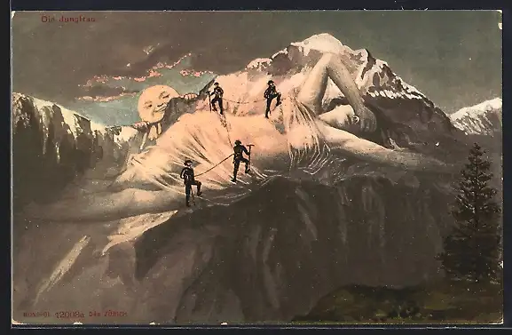AK Die Bergsteiger kraxeln auf der Jungfrau, Berggesichter