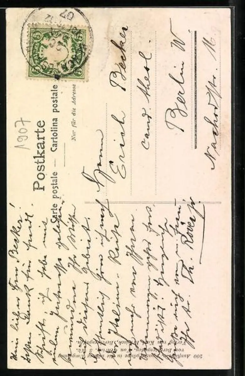 alte Ansichtskarte, gelaufen 1907, Eckknick unten re., guter Zustand