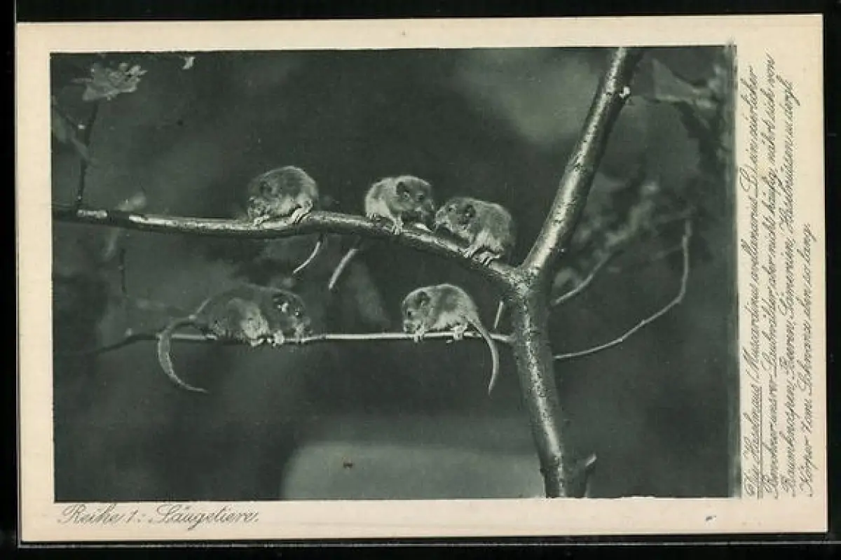 AK Die Haselmaus, Heimatschutz-Postkarte, Reihe 1: Säugetiere