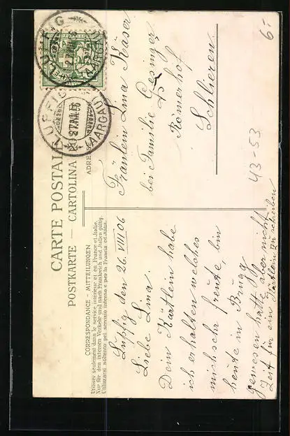 alte Ansichtskarte, gelaufen 1906, guter Zustand