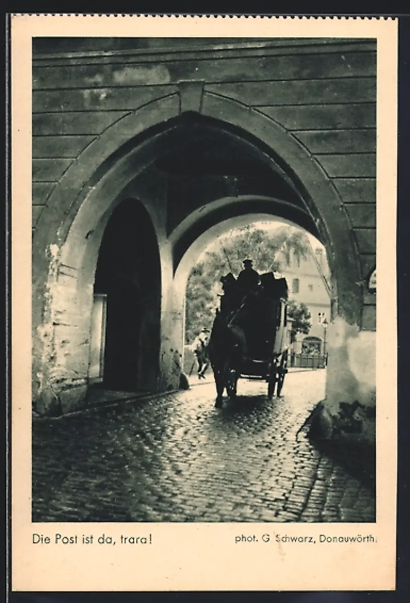 AK Die Post ist da, trara! Postkutsche auf der Strasse