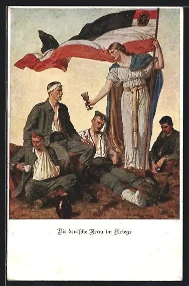 AK Die deutsche Frau im Kriege reicht Verwundeten Getränke, Rotes Kreuz