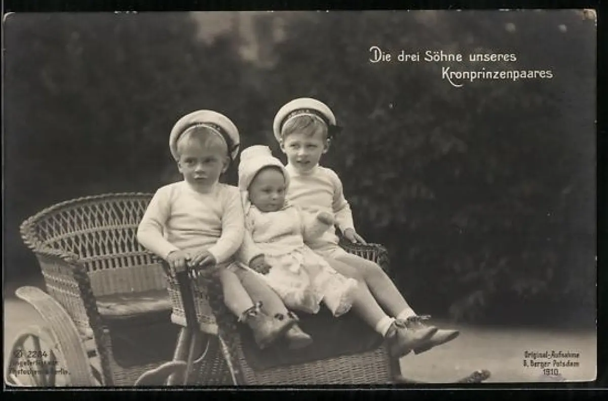 AK Die drei Söhne des Kronprinzenpaares von Preussen in jungen Jahren fahren mit einer Kutsche