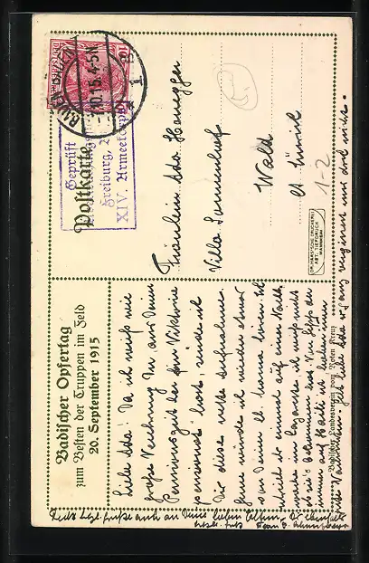 AK Die grossherzogliche Familie von Baden, Badischer Opfertag, 20.9.1915