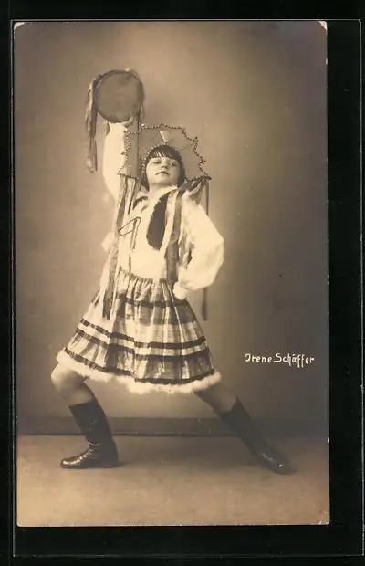 AK Die kleine Tänzerin Irene Schäffer im Kostüm mit Tambourin