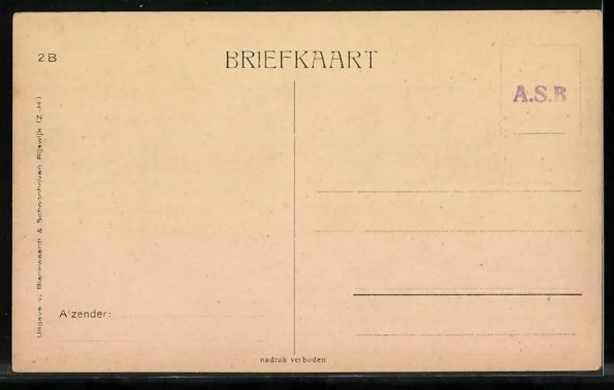Personenbezogene Daten auf der Rückseite der Karte wurden durch blauen Textmarker unkenntlich gemacht. Die blauen Stellen sind auf die Vorderseite durchgeweicht und wirken sich negativ auf das Postkartenfoto aus