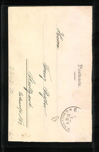 alte Ansichtskarte, gelaufen 1902, Briefmarke entfernt, rückseitig Oberflächenschaden, guter Zustand
