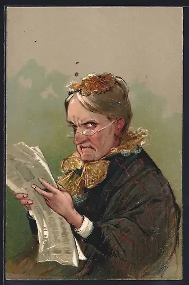 AK Die misstrauische Schwiegermutter liest Zeitung, frauenfeindlicher Humor