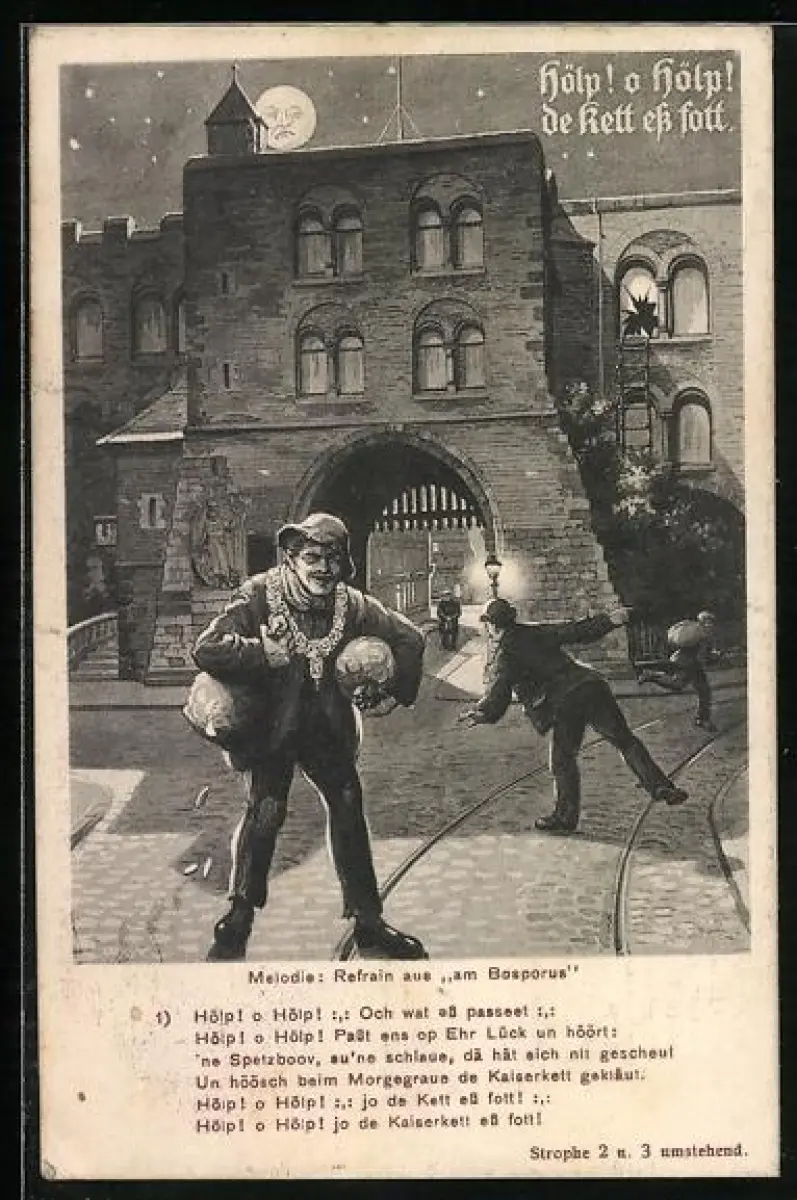 AK Diebe am Abend in den Strassen einer Stadt, Lied Hölp! o Hölp! de Kett ess fott