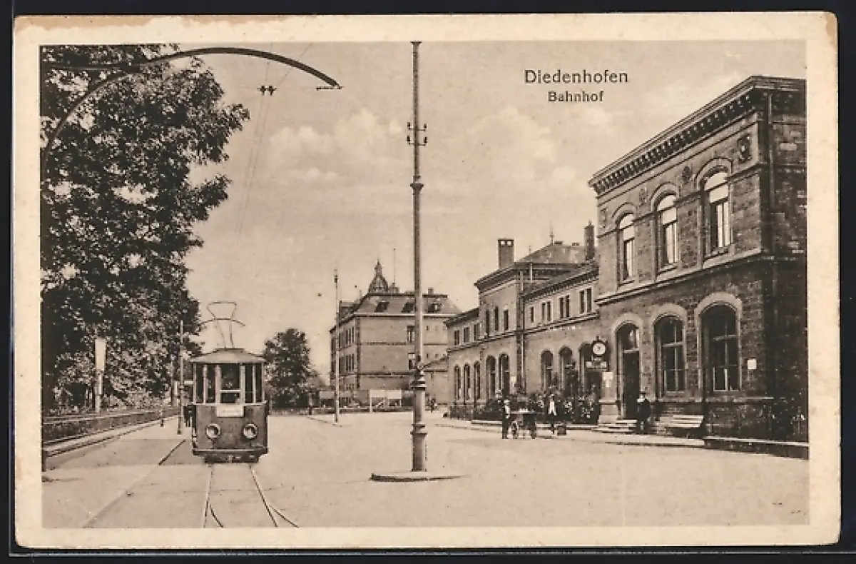 AK Diedenhofen, Bahnhof mit Strassenbahn