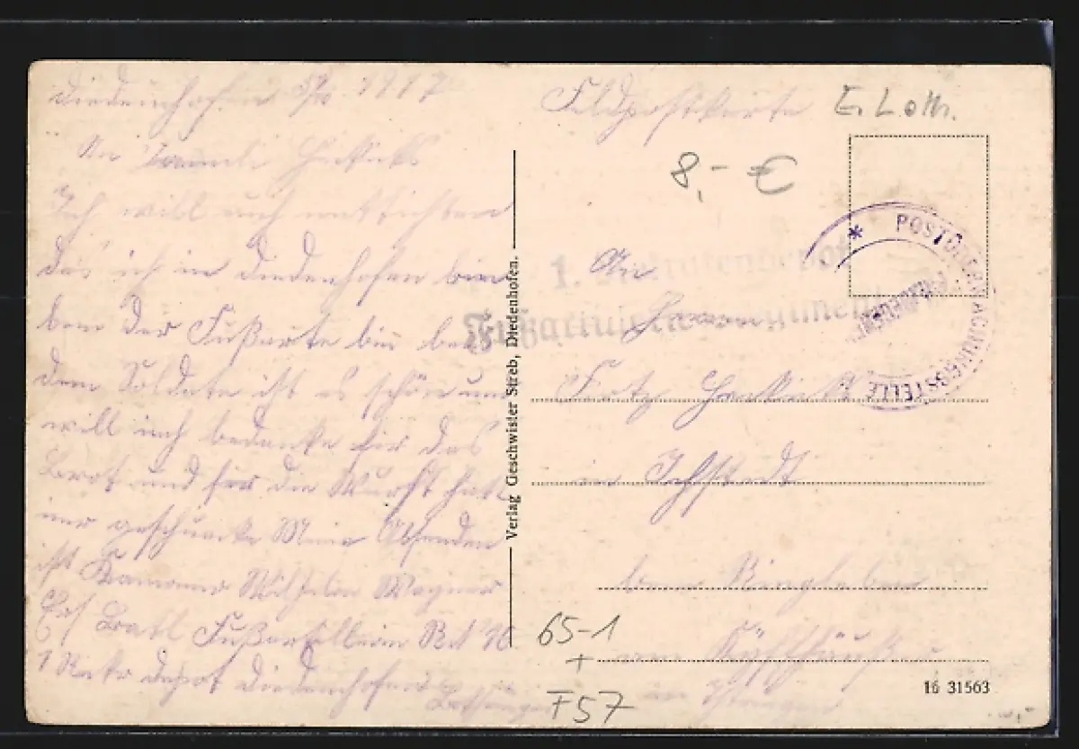 alte Ansichtskarte, gelaufen 1917, Oberflächenschaden li. oben, guter Zustand