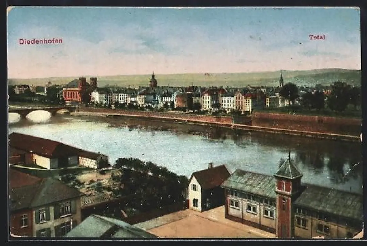 AK Diedenhofen, Ortsansicht mit Flusspartie