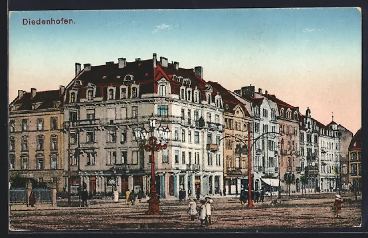 AK Diedenhofen, Vue sur les bâtiments et la place animée avec passants