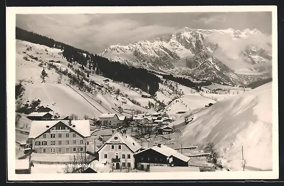 AK Dienten, Teilansicht mit Gasthof zum Hochkönig im Schnee