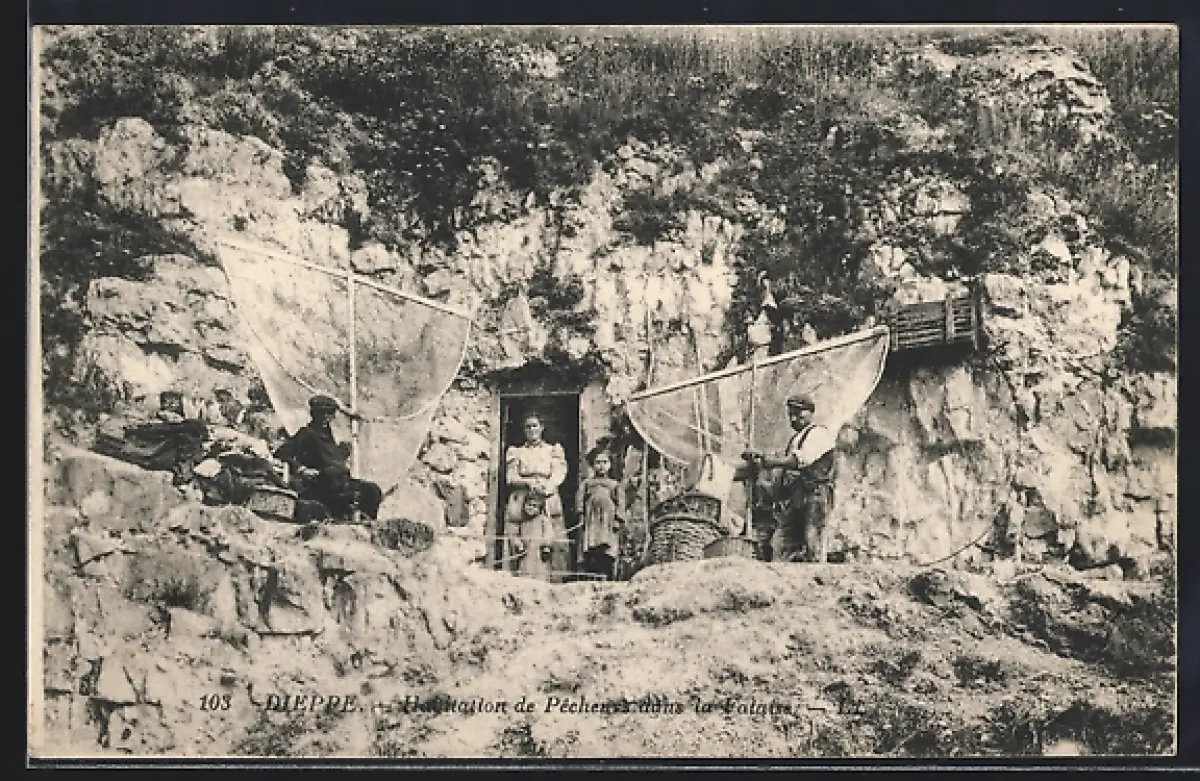 AK Dieppe, Installation de Pêcheurs dans la falaise