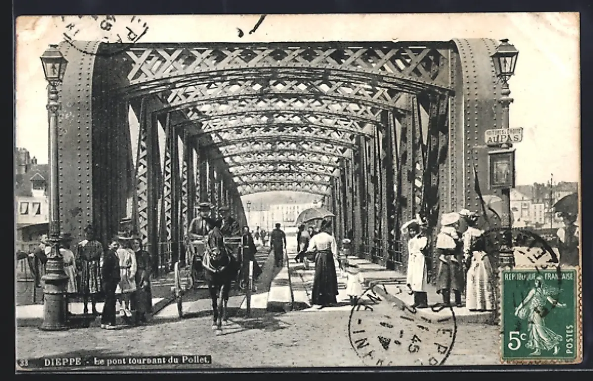 AK Dieppe, Le pont tournant du Pollet avec passants et calèche