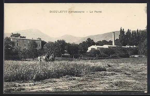 AK Dieulefit, Le Parol pittoresque avec vue sur champs et bâtiments industriels