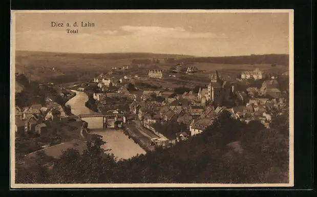 AK Diez /Lahn, Totalansicht mit Brücke