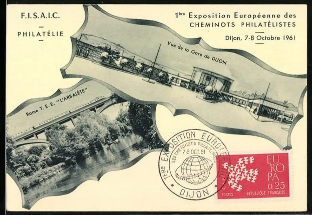 AK Dijon, 1ere Exposition Europeenne des Cheminots Philatelistes 1961, Vue de la Gare, T.E.E. L`Arbalete