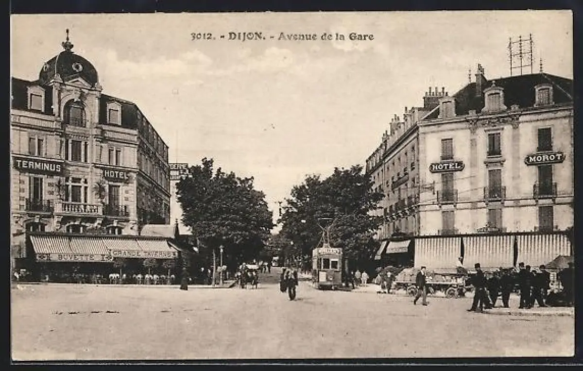 AK Dijon, Avenue de la Gare, Strassenbahn