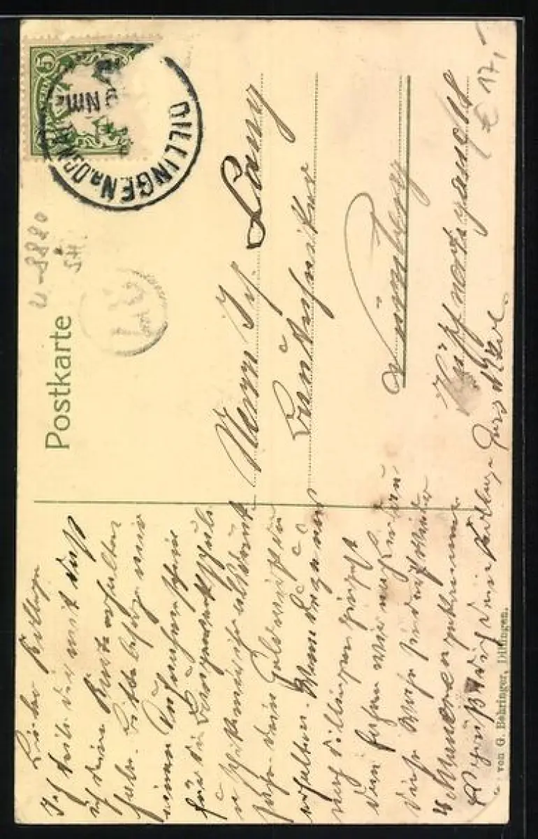alte Ansichtskarte, gelaufen, Briefmarke entfernt, guter Zustand