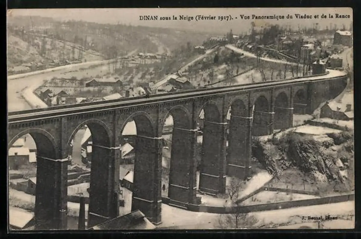 AK Dinan, Vue panoramique du viaduc et de la Rance sous la neige