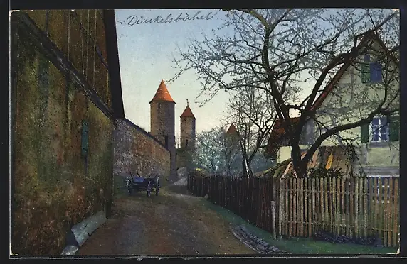 AK Dinkelsbühl, an der Stadtmauer mit Königsturm