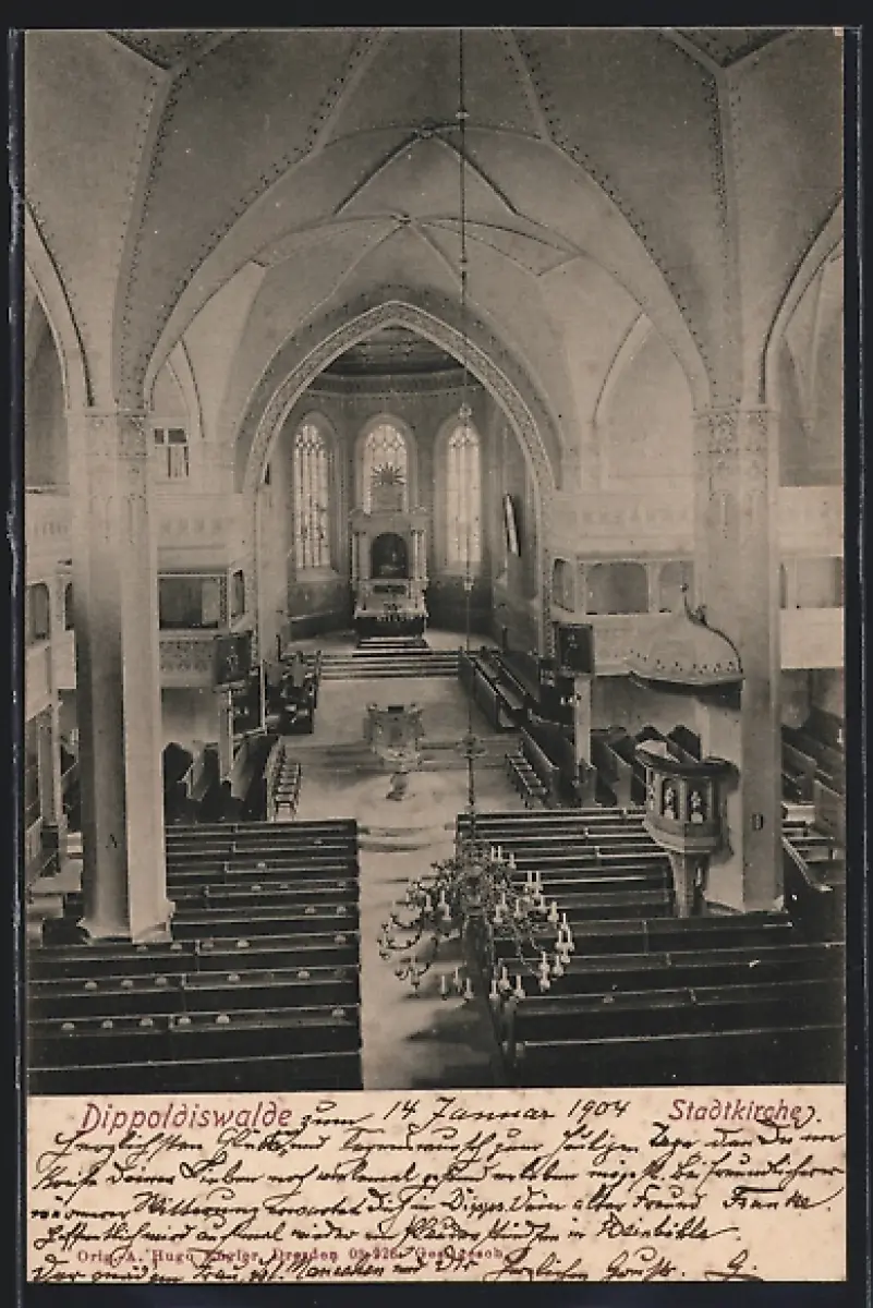 AK Dippoldiswalde, Kirchsaal der Stadtkirche