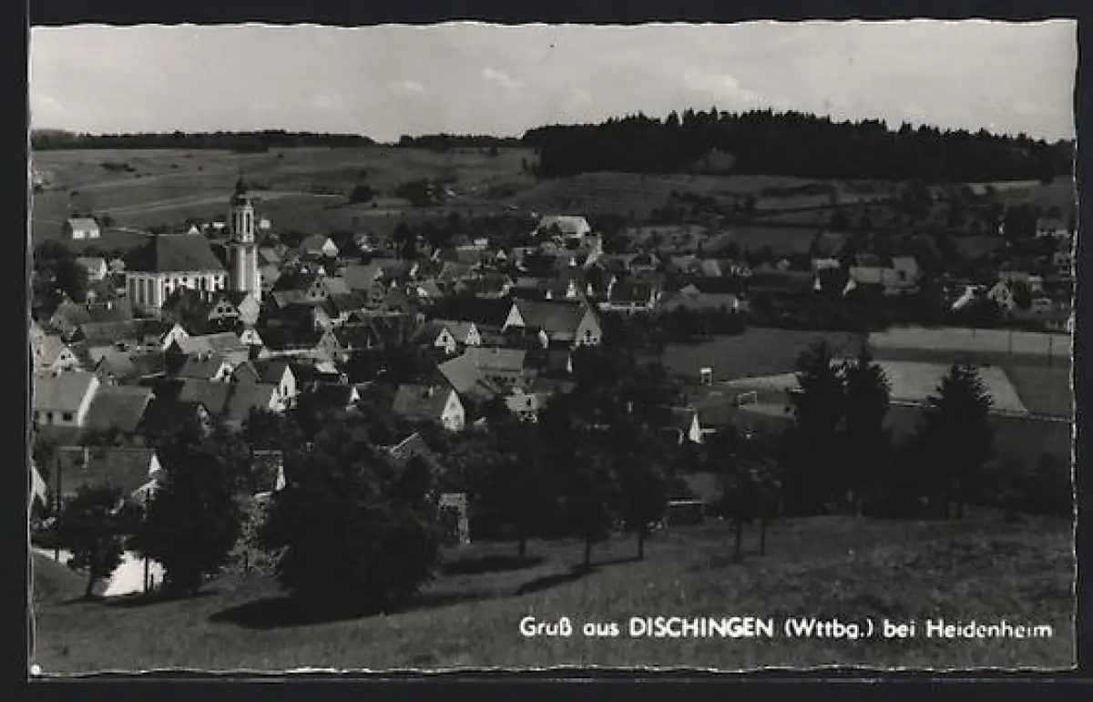 AK Dischingen /Wttbg., Ortsansicht mit Kirche und umliegender Landschaft