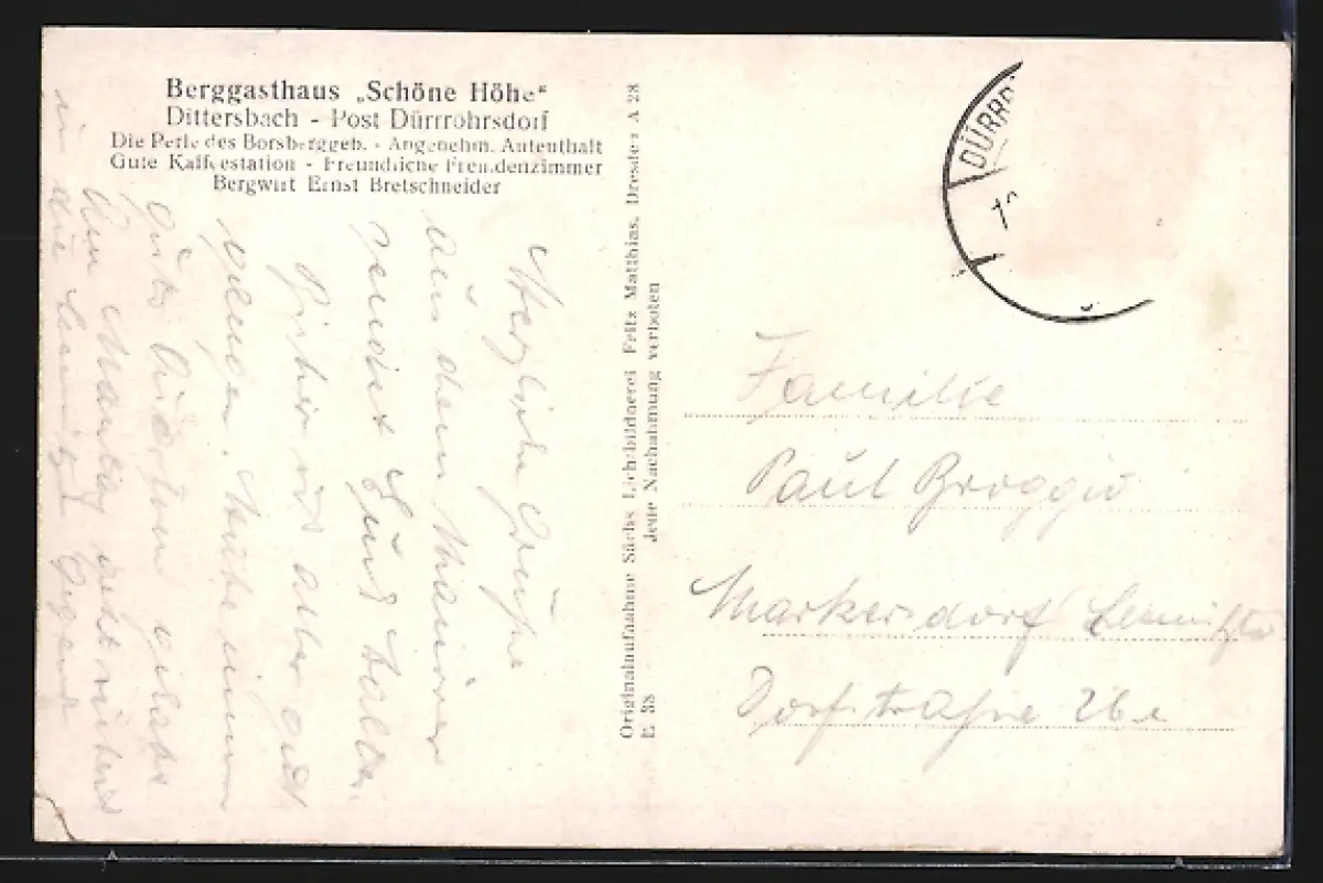 AK Dittersbach / Dürrröhrsdorf, Berggasthaus Schöne Höhe, Inh. Ernst Bretschneider